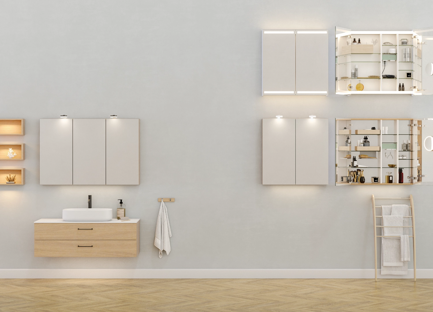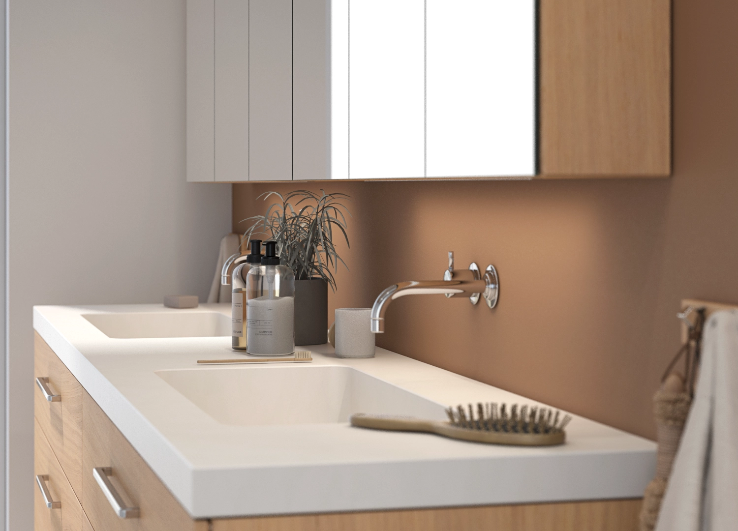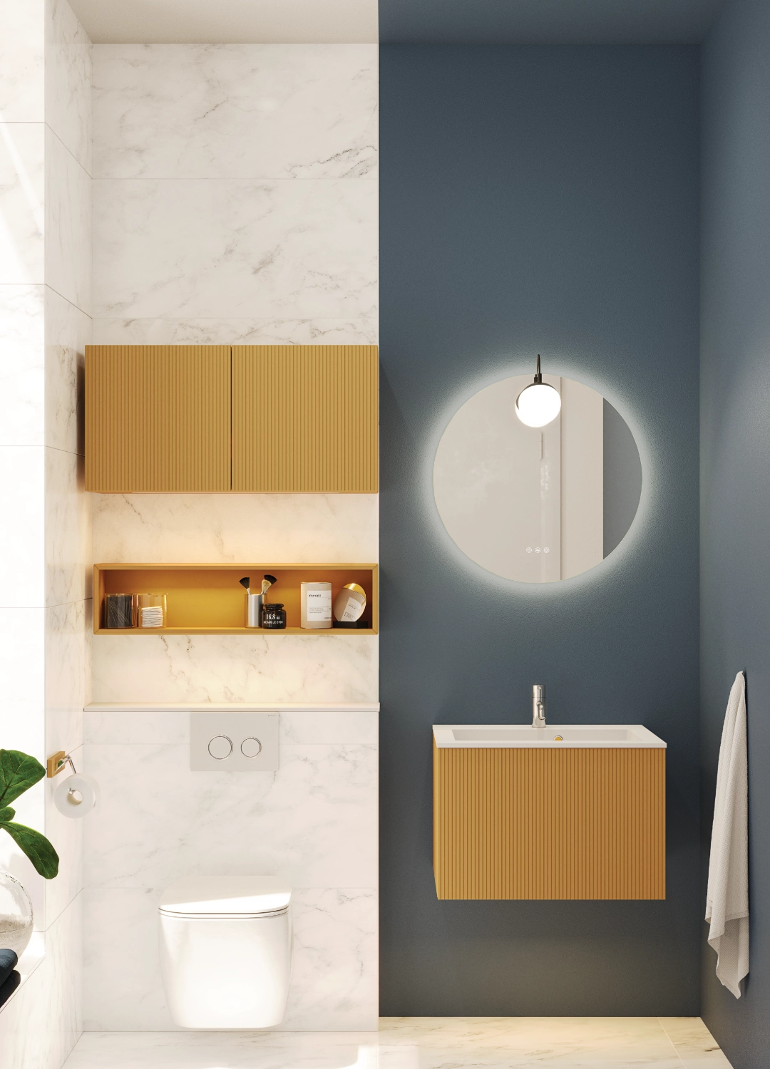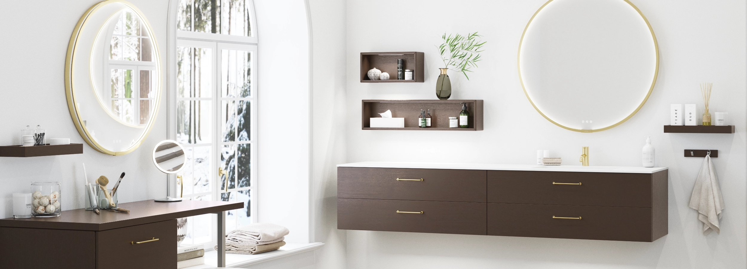 Urban: Embrace sleek, modern design with clean lines, minimalist aesthetics, and a focus on functionality. Opt for streamlined cabinets, geometric mirrors, and monochromatic colour palettes. Ideal for those who appreciate a minimalist look.
