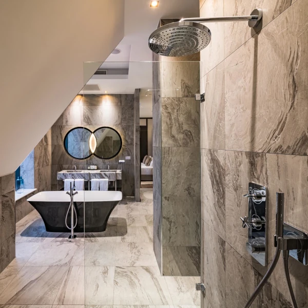 The selection of brands for the bathroom renovation was a crucial element of the project’s success. We chose Villeroy & Boch sanitaryware for its perfect blend of aesthetics and functionality, as well as Hansgrohe fixtures, which offered the latest in bathroom technology. Viega flush cisterns and flush plates were selected for their efficiency and ease of maintenance, while Vado infrared taps and accessories added a touch of modernity to the bathrooms. The HIB mirrors were both practical and stylish, while Kudos and Crystaltech shower doors provided a sleek and contemporary touch. The Kaldewei shower trays and iconic Victoria & Albert Ionian freestanding bath were the perfect finishing touches to create a luxurious bathroom experience.